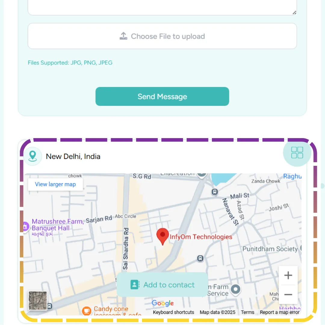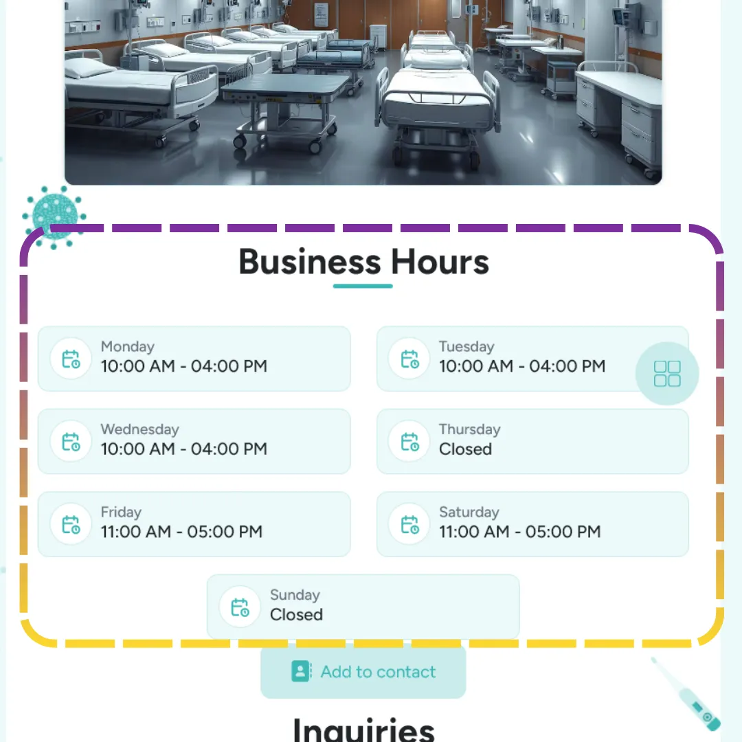 Embed your precise location so customers can find you effortlessly with one tap—perfect for physical stores, clinics, and offices.